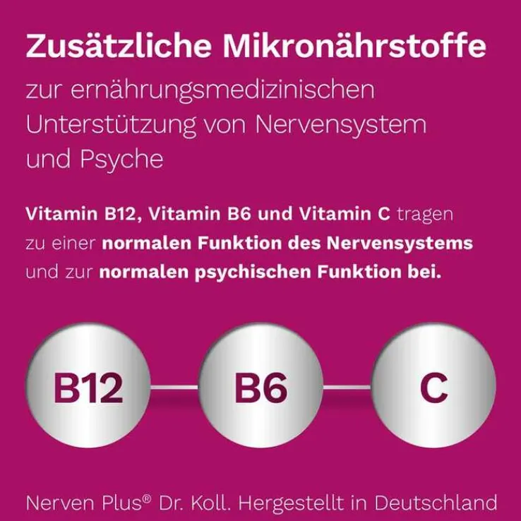 - Vitamin B12, B6, C tragen zu einer normalen Funktion des Nervensystems und zur normalen psychischen Funktion bei