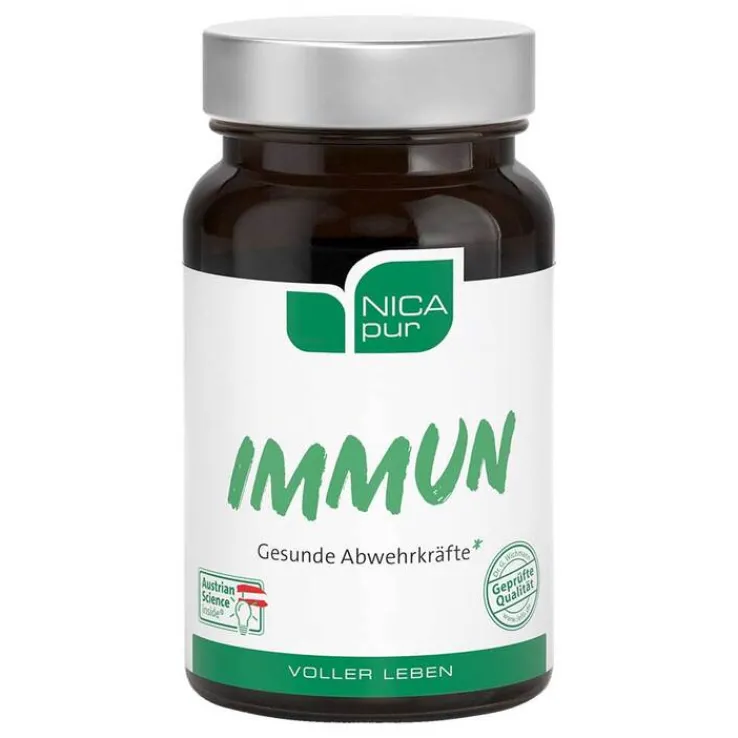 Zur effektiven Schutzfunktion des Immunsystems stehen der körpereigenen Abwehr verschiedene Vitamine und Spurenelemente tatkräftig zur Seite. Insbesondere in immunologisch schwierigen Zeiten, wie in der nasskalten Jahreszeit, sollte für optimale Bedingungen für unser Immunsystem gesorgt werden. Nicapur Immun vereint Immunklassiker wie Vitamin C (Ester-C), D, B6, Zink und Selen mit Holunderbeeren-Extrakt als Basis für Ihr Immunsystem.*