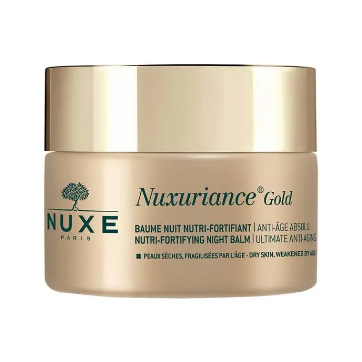 Lernen Sie Nuxuriance Gold kennen, die Premium-Gesichtspflege speziell für trockene, altersbedingt beanspruchte Haut. Die Anti-Aging Intensivpflege für die Nacht mit dem wertvollen Oleoactif des Fackelingwers regt die Mikrozirkulation der Haut an und verleiht Ihrem Teint dadurch mehr Leuchtkraft. Durch einen nährenden, aufbauenden Komplex und die bifloralen Zellen aus Safran und Bougainvillea wird Ihre Haut zusätzlich geglättet und optimal genährt. Die luxuriöse, verwöhnende Textur und der sinnliche Duft sorgen für echte Wohlfühlmomente.