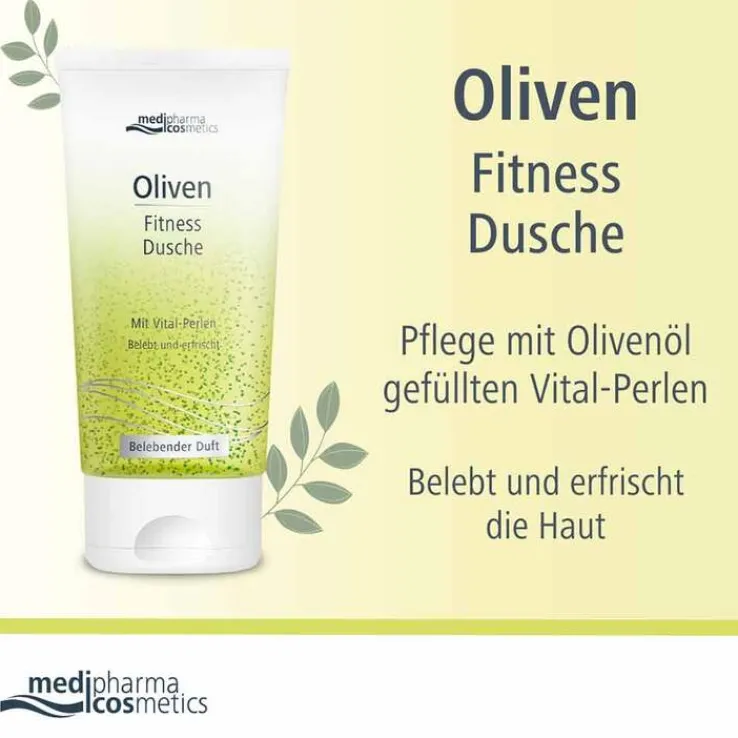 Entdecken Sie die belebende Frische mediterraner Pflege – verwöhnen Sie Ihre Sinne mit der Oliven Fitness Dusche von medipharma cosmetics