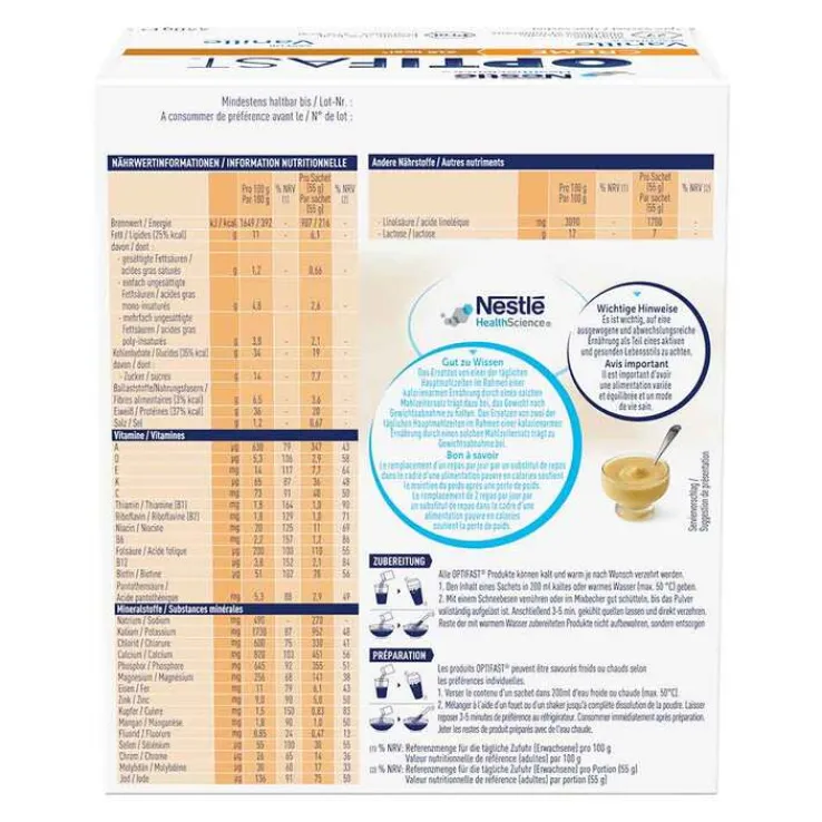 Die Optifast Produkte erfüllen nur im Rahmen einer kalorienarmen Ernährung den angestrebten Zweck, andere Lebensmittel müssen Teil dieser Ernährung sein.