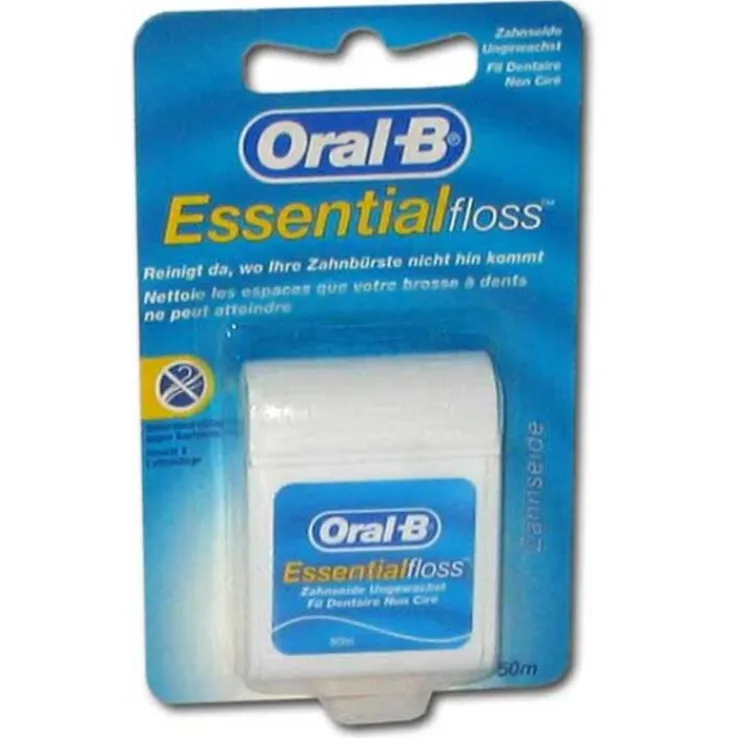 Oral-B Essentialfloss™ reinigt an Stellen, die Ihre Zahnbürste nicht erreicht. Durch seine neue Kern-Hüllen-Technologie ist es noch dünner und gleitfähiger. So lässt sich Plaque mühelos entfernen. Es ist leicht einzuführen und franst nicht aus, während es durch die Zähne gleitet.