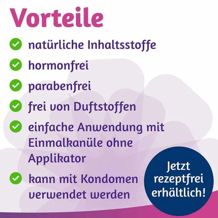 Bei der Anwendung kann eine geringe Menge aus der Vagina ausfließen oder ein Rest in der Kanüle verbleiben. Dank der sehr guten Absorption bleibt die erforderliche und ausreichende Menge im zervikovaginalen Bereich zurück. Die Wirksamkeit der Behandlung wird dadurch nicht beeinflusst. Für das eigene Wohlbefinden können nach der Anwendung Binden oder Slipeinlagen benutzt werden.