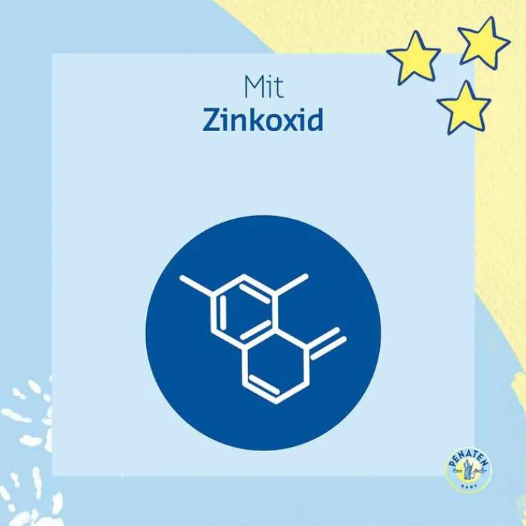 Die Penaten Wundschutzcreme eignet sich dank ihrer leichten Textur ideal zur täglichen Anwendung. Die Penaten Baby Hautcreme gegen Rötungen mit Zinkoxid wurde speziell für den Schutz vor Wundsein im Windelbereich entwickelt. Sie bildet einen atmungsaktiven Schutzfilm und beruhigt die Haut schnell. Zudem ist die Hautverträglichkeit der Penaten Babycreme dermatologisch bestätigt.
