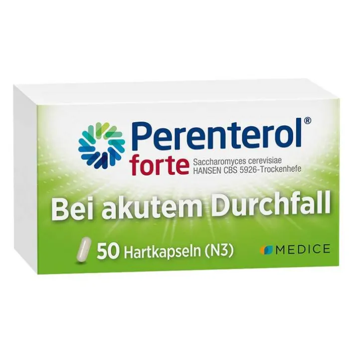 Perenterol® forte 250 mg Kapseln. Wirkstoff: Trockenhefe aus Saccharomyces cerevisiae HANSEN CBS 5926 (Synonym: Saccharomyces boulardii). Anwendungsgebiete: Zur Behandlung der Beschwerden bei akuten Durchfallerkrankungen, zur Vorbeugung und Behandlung der Beschwerden von Reisedurchfällen sowie Durchfällen unter Sondenernährung. Zur begleitenden Behandlung bei länger bestehenden Formen der Akne. Für Erwachsene und Kinder ab 2 Jahren. Warnhinweis: Enthält Lactose. Zu Risiken und Nebenwirkungen lesen Sie die Packungsbeilage und fragen Sie Ihre Ärztin, Ihren Arzt oder in Ihrer Apotheke.Stand: 08/2024. MEDICE Arzneimittel, 58638 Iserlohn.