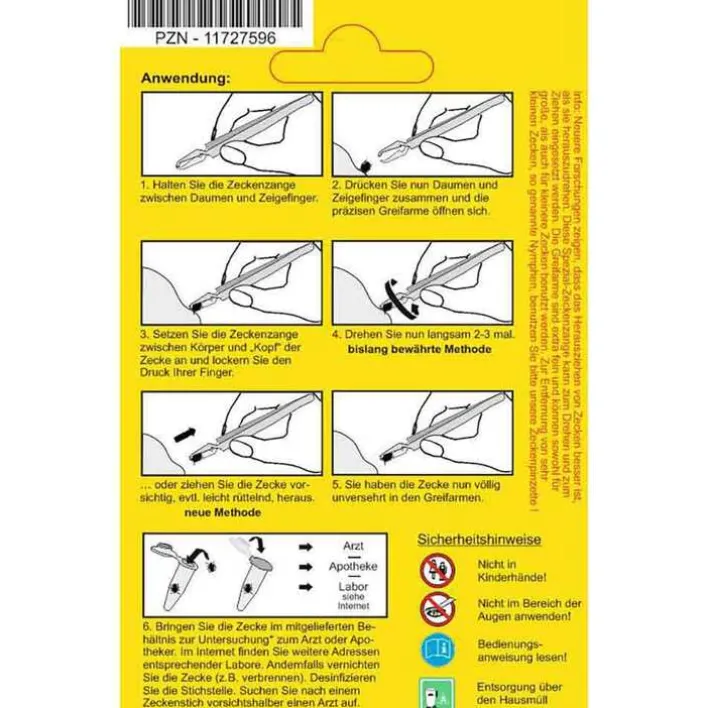 Die Zeckenzange aus geriffeltem Chirurgenstahl ist ideal geeignet für die Entfernung von kleinen und großen Zecken.