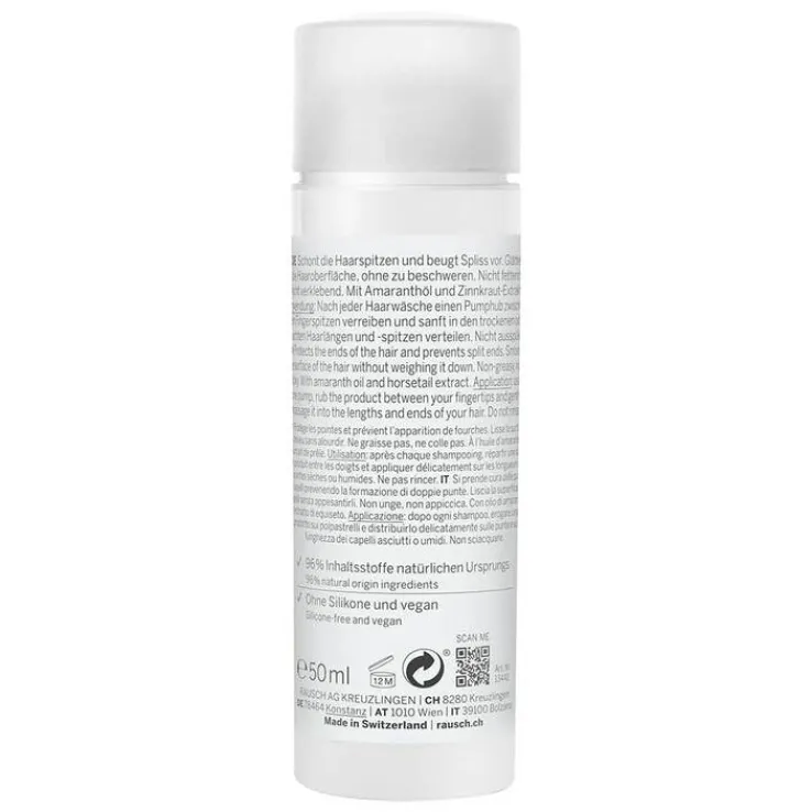 Die Rausch Repair-Cream mit Amaranth schont die Haarspitzen und reduziert dabei vorhandenen Spliss deutlich. Ihre kraftvolle Wirkung verhindert die antistatische Aufladung sowie unerwünschten Frizz. Das Haar wird glatt und gleitet leicht durch die Finger, ohne zu fetten oder zu verkleben.