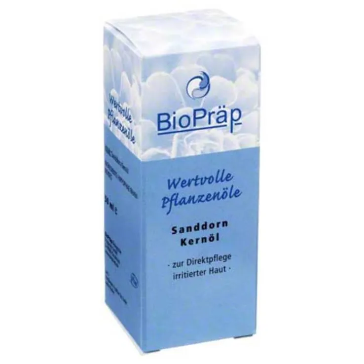 Reines, kaltgepresstes Sanddorn Kernöl weist einen außergewöhnlich hohen Anteil an essentieller Linolensäure (über 30%) auf. Zusammen mit den anderen gut verwertbaren, mehrfach ungesättigten Fettsäuren stellt es ein besonders wertvolles Kosmetiköl dar. Es eignet sich hervorragend zur intensiven Pflege von irritierter, rissiger oder juckender Haut und Schleimhaut. Mehrfach täglich auf die entsprechenden Hautpartien aufgetragen spüren Sie, wie die Haut sich wieder weich und elastisch anfühlt.