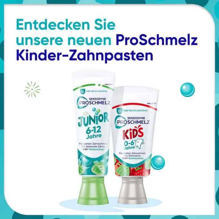 Die Sensodyne ProSchmelz Kids Zahnpasta wurde speziell für Kinder im Alter von 0–6 Jahren entwickelt. Sie schützt den wertvollen Zahnschmelz und bietet 24 Stunden* Kariesschutz für starke, gesunde Zähne.
