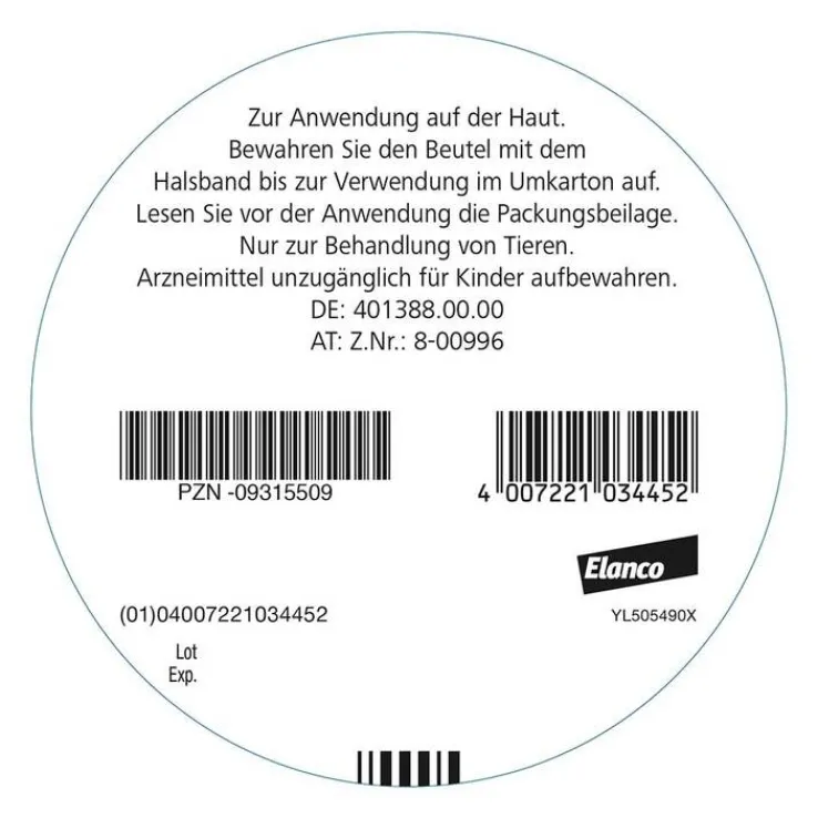 Seresto® 1,25 g + 0,56 g Halsband für Hunde ≤ 8 kg. Anwendungsgebiete: Zur Vorbeugung und Behandlung von Flohbefall (Ctenocephalides felis, C. canis) mit einer Wirkungsdauer von 7 bis 8 Monaten. Das Tierarzneimittel verhindert die Entwicklung von Flohlarven in der unmittelbaren Umgebung des Tieres für 8 Monate. Das Tierarzneimittel kann als Teil der Behandlungsstrategie bei durch Flohstiche ausgelöster allergischer Hautentzündung (Flohallergiedermatitis, FAD) angewendet werden. Das Tierarzneimittel hat eine anhaltend akarizide (abtötende) Wirkung bei Zeckenbefall mit Ixodes ricinus, Rhipicephalus sanguineus, Dermacentor reticulatus, sowie repellierende (anti-feeding = die Blutmahlzeit verhindernde) Wirkung bei Zeckenbefall (Ixodes ricinus und Rhipicephalus sanguineus) mit einer Wirkungsdauer von 8 Monaten. Das Tierarzneimittel ist wirksam gegen Larven, Nymphen und adulte Zecken. Es ist möglich, dass Zecken, die zum Zeitpunkt der Behandlung bereits am Hund vorhanden sind, nicht innerhalb der ersten 48 Stunden nach Anlegen des Halsbandes getötet werden und angeheftet und sichtbar bleiben. Deshalb sollten die Zecken, die zum Behandlungszeitpunkt bereits auf dem Hund befindlich sind, entfernt werden. Der Schutz vor dem Befall mit neuen Zecken beginnt innerhalb von zwei Tagen nach Anlegen des Halsbandes. Das Tierarzneimittel vermittelt indirekten Schutz gegen eine Übertragung der Erreger Babesia canis vogeli und Ehrlichia canis durch die Vektorzecke Rhipicephalus sanguineus. Dadurch wird das Risiko für eine Babesiose und eine Ehrlichiose des Hundes über einen Zeitraum von sieben Monaten reduziert. Zur Verringerung des Infektionsrisikos durch den von Sandmücken übertragenen Erreger Leishmania infantum über einen Zeitraum bis zu 8 Monaten. Behandlung gegen Haarlingsbefall (Trichodectes canis). Zu Risiken und Nebenwirkungen lesen Sie die Packungsbeilage und fragen Sie Ihren Tierarzt oder Apotheker. Apothekenpflichtig. Pharmazeutischer Unternehmer: Elanco GmbH, Heinz-Lohmann-Straße 4, 27472 Cuxhaven, Deutschland. Druckversion: 08/2020