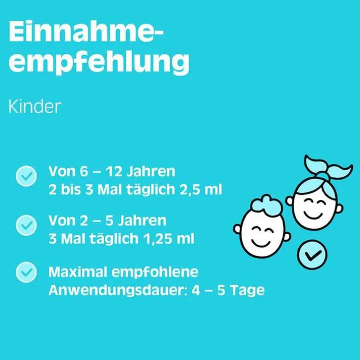 Kinder von 2 bis 5 Jahren: 3-mal täglich 1,25 ml