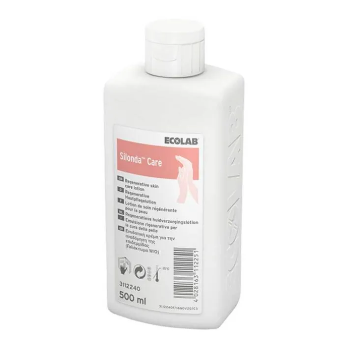 Die Silonda Care Hautpflege Lotion ist eine Wasser-in-Öl-Emulsion zur Regeneration der Haut. Sie gibt der Haut wichtige Lipide zurück und pflegt sie mit Glycerin sowie Vitamin E. Die Lotion ist zur Patientenpflege geeignet.