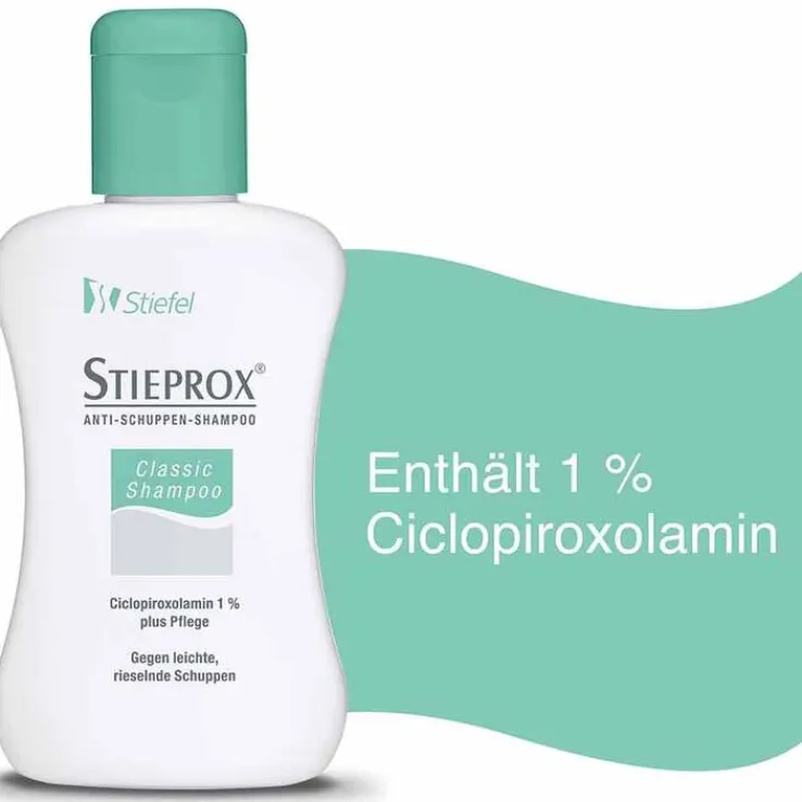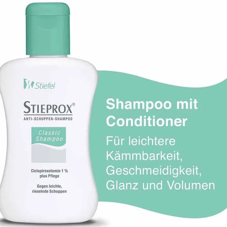 Stieprox Classic Shampoo mit dem Anti-Schuppen-Wirkstoff Ciclopiroxolamin dient der Pflege der Kopfhaut bei Schuppen. Ciclopiroxolamin bekämpft gezielt die Ursachen der Schuppen. Der enthaltene Conditioner ermöglicht eine leichte Kämmbarkeit, gibt dem Haar Geschmeidigkeit, Glanz und Volumen.