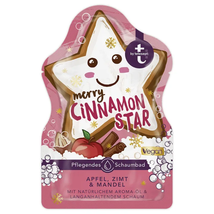 Tauchen Sie ab und kuscheln sich gemütlich von Kopf bis Fuß in den flauschigen Schaum vom Merry Cinnamon Star ein. Fühlen Sie sich von der wunderbaren Rezeptur gepflegt. Der Duft nach Apfel, Zimt und Mandel sorgt für ein wunderbar winterliches Badeerlebnis.