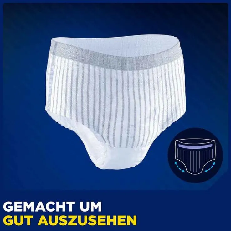 Um Betroffenen weiterhin ein aktives Leben ohne Einschränkungen zu ermöglichen, entwickelt TENA® seit über 50 Jahren innovative Hilfsmittel für einen diskreten und zuverlässigen Schutz. Abgestimmt auf die männlichen Bedürfnisse, wurden TENA® MEN PREMIUM FIT Pants Maxi eigens entwickelt und eignen sich mit maximaler Saugstärke als Auslaufschutz bei starkem Harnverlust. Die Einweg-Pants mit maskulinem Streifen-Design und abgesetztem, elastischem Bund sind wie herkömmliche Unterwäsche gestaltet. Dank flexibler Passform sitzen sie bei jeder Bewegung sicher und bequem.