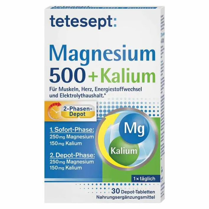 - Depot-Phase: 250mg Magnesium + 150mg Kalium + B6 + B12