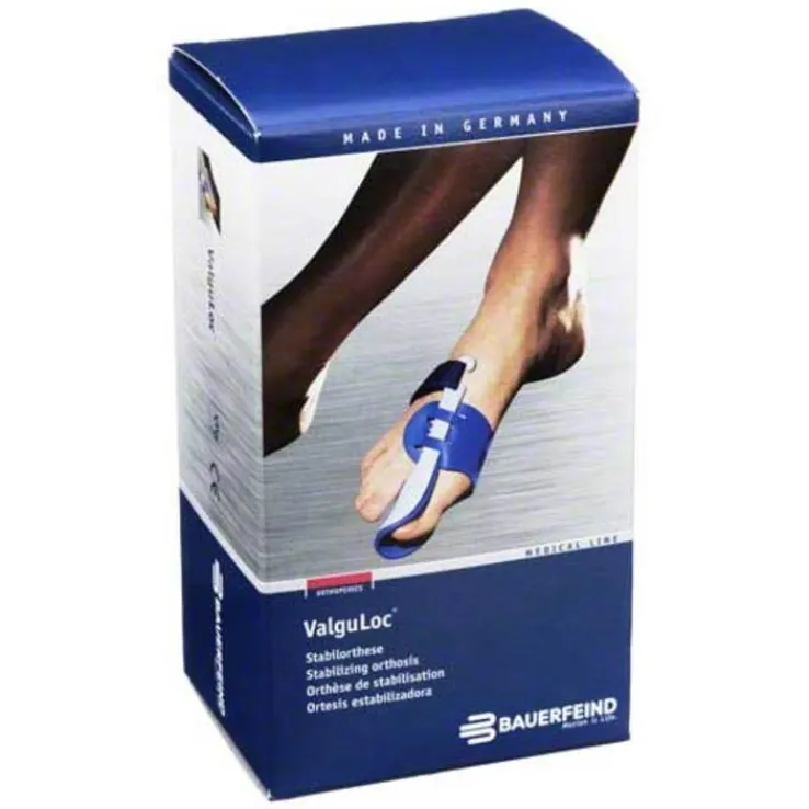 Die ValguLoc Orthese wird zur Korrektur einer Fehlstellung in den großen Zehen (Hallux valgus) eingesetzt. Sie kann im frühen Stadium oder nach einer operation eingesetzt werden. Durch ihre starre Form ist sie nicht zum gehen geeignet und wird nur Barfuß getragen.