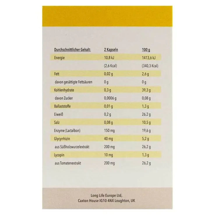 * enthält Lycopin ** enthält Lactalbuminhydolysat aus Kuhmilch *** vegetabil