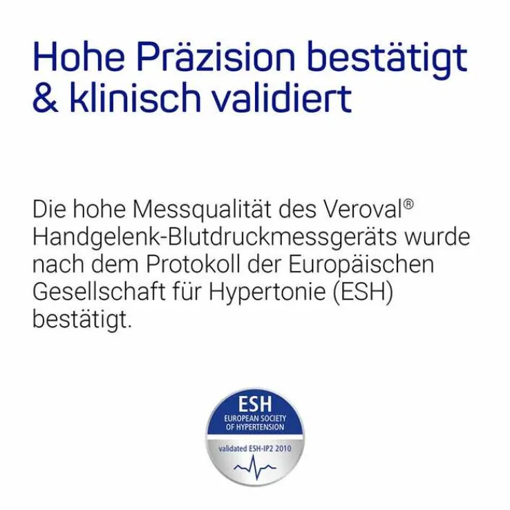 - Hohe Präzision bestätigt: nachgewiesen hohe Messqualität mit dem Qualitätssiegel der Europäischen Gesellschaft für Hypertonie (ESH)