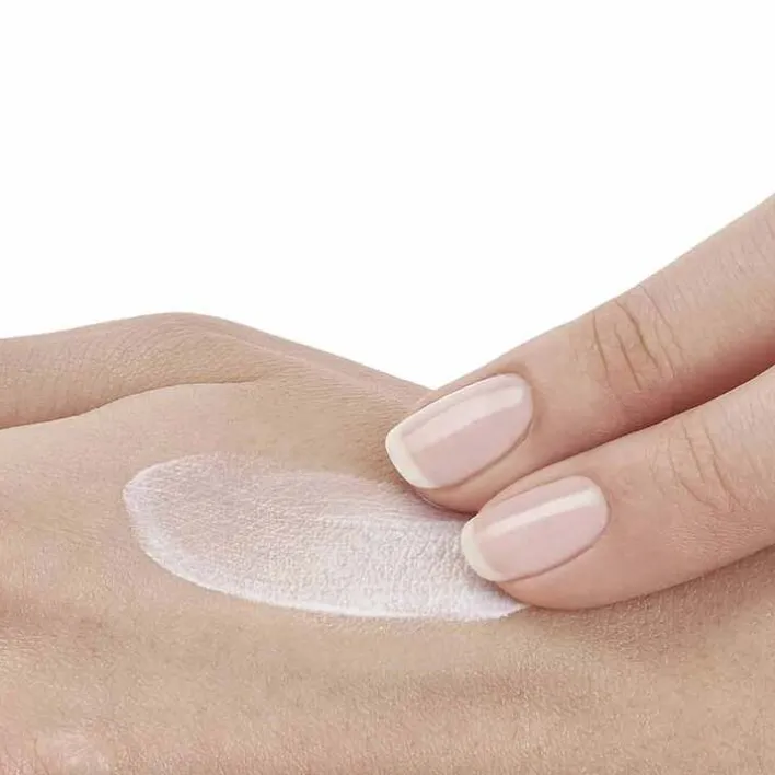 Vollständig einziehen lassen und direkten Kontakt mit Textilien und harten Oberflächen vermeiden, um Verfärbungen vorzubeugen.