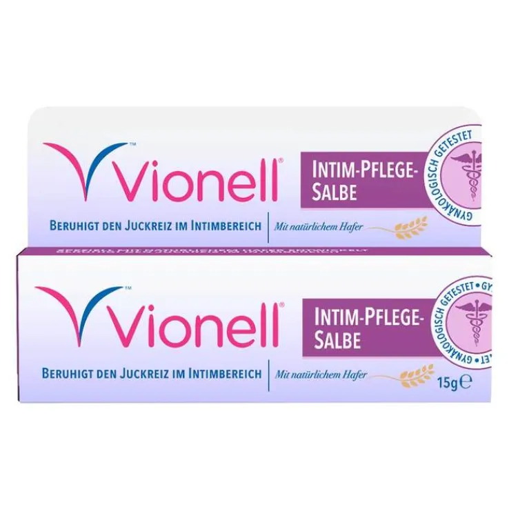 Die Vionell Intim-Pflege-Salbe mit natürlichem Hafer bietet milde und beruhigende Pflege für den Intimbereich.