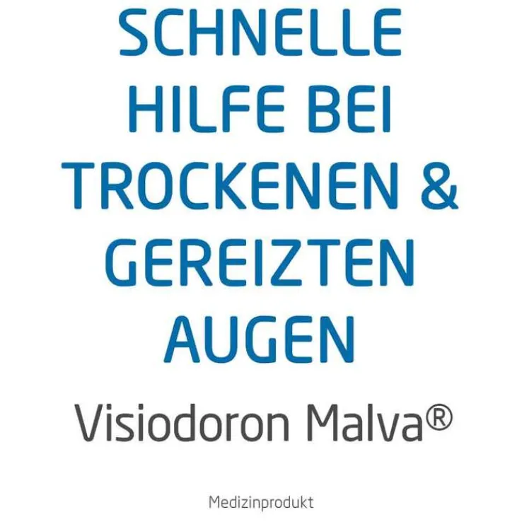 Wenn der Tränenfilm die Augen nicht genügend benetzen kann, fühlen sie sich trocken und gereizt an, der Lidschlag reibt – als ob ein Fremdkörper im Auge wäre. Visiodoron Malva® mit gentechnikfreiem Natriumhyaluronat und Malvenextrakt stabilisiert den Tränenfilm, beruhigt und spendet Feuchtigkeit. Gereizte, trockene oder müde Augen werden so befeuchtet und beruhigt.
