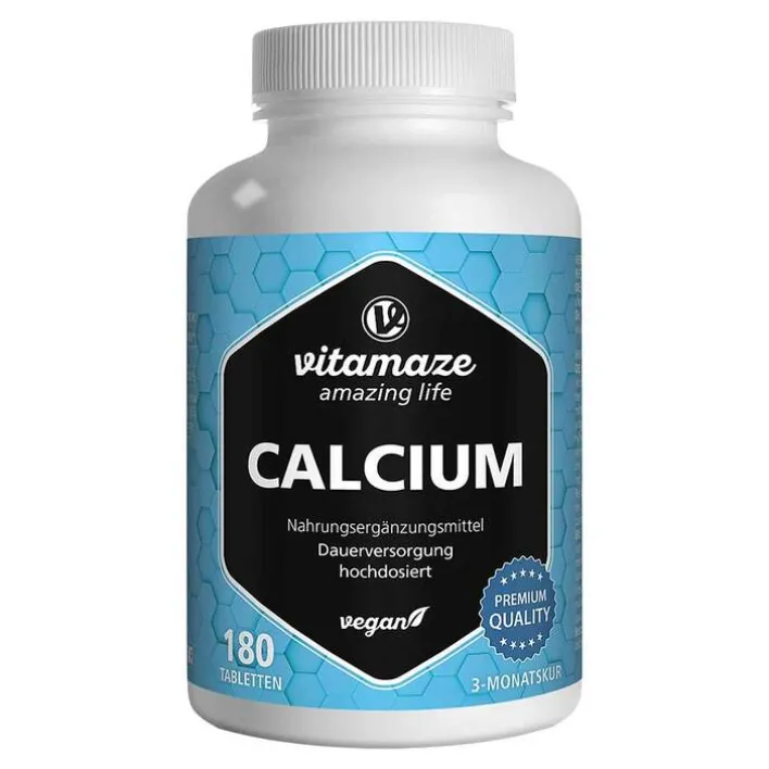 Zur Erhaltung normaler Knochen und Zähne ist Calcium sehr wichtig für unseren Körper. Calcium ist auch an anderen Funktionen im Körper beteiligt, es trägt zu einer normalen Blutgerinnung, zu einem normalen Energiestoffwechsel und zu einer normalen Muskelfunktion bei. Ebenso trägt es zur normalen Funktion von Verdauungsenzymen, zu einer normalen Signalübertragung zwischen den Nervenzellen bei und Calcium hat eine Funktion bei der Zellteilung und -spezialisierung. Für eine ausreichende Versorgung benötigen Sie nur 2 Vitamaze Calcium 400 mg Tabletten pro Tag.