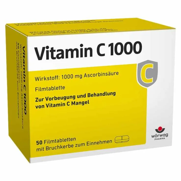 Vitamin C 1000 Filmtabletten. Wirkstoff: Ascorbinsäure. Anwendungsgebiete: Prophylaxe von Vitamin-C-Mangel, wenn ausreichende Zufuhr durch Ernährung nicht gesichert. Therapie von Vitamin-C-Mangel-Krankheiten. Zu Risiken und Nebenwirkungen lesen Sie die Packungsbeilage und fragen Sie Ihre Ärztin, Ihren Arzt oder in Ihrer Apotheke. WÖRWAG Pharma GmbH & Co.KG, 71034 Böblingen
