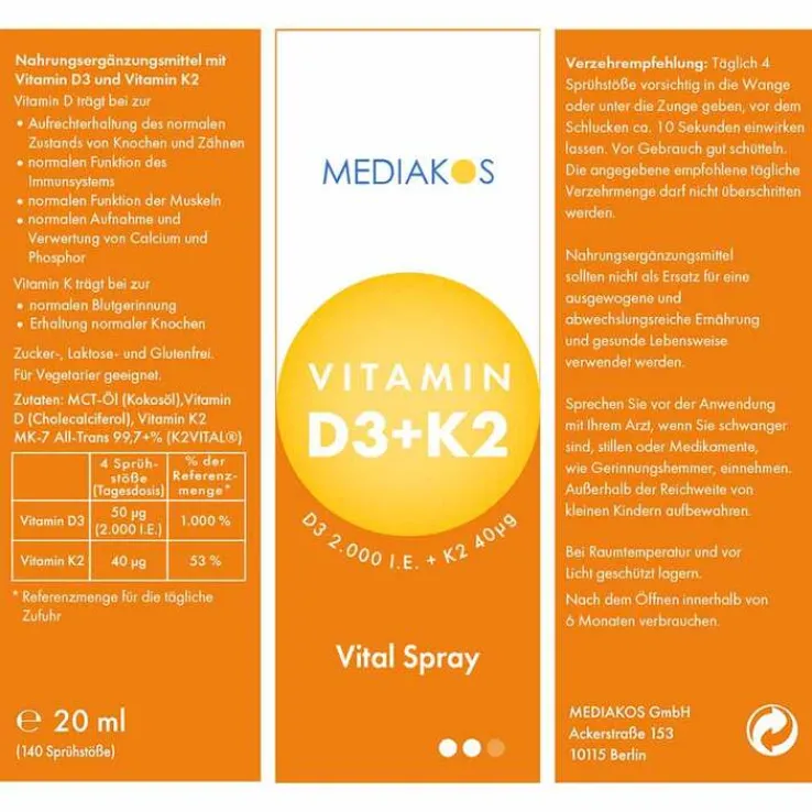 Schreibe die erste Bewertung für „Vitamin D3 + K2 2000 I.E. 40 µg Mediakos Vital Spray, 20 ml“ Antworten abbrechen