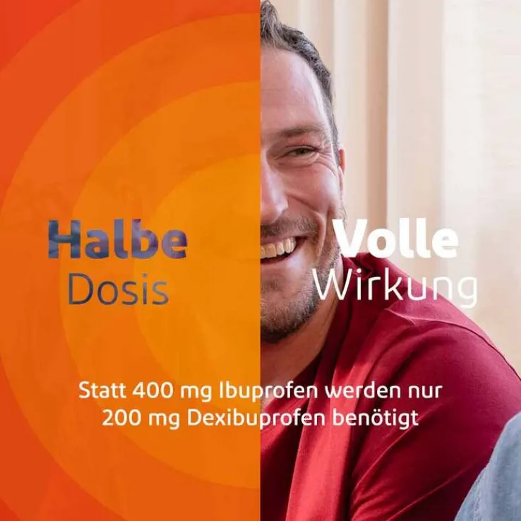 - Halbe Dosis, volle Wirkung: Im Vergleich zu 400 mg Ibuprofen werden für die gleiche Schmerzlinderung bei Dexibuprofen nur 200 mg Wirkstoff benötigt