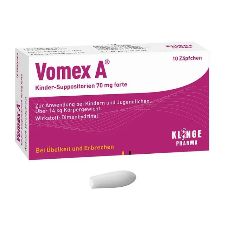- Die Vomex A® Kinder-Zäpfchen 70 mg für Kinder und Jugendliche sind vor allem geeignet bei zusätzlichem Erbrechen.