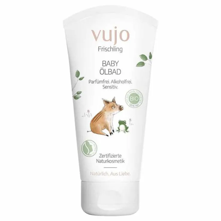Am Anfang braucht die Haut Ihres Babys Unterstützung beim Aufbau der natürlichen Hautbarriere, die die empfindliche Haut vor Umwelteinflüssen schützt. Das weiche vujo Frischling Baby Ölbad fördert die Entwicklung des eigenen Hautschutzes, ist rückfettend und pflegt die zarte Haut Ihres Babys streichelzart schon beim ersten Baden, ohne zu schäumen.