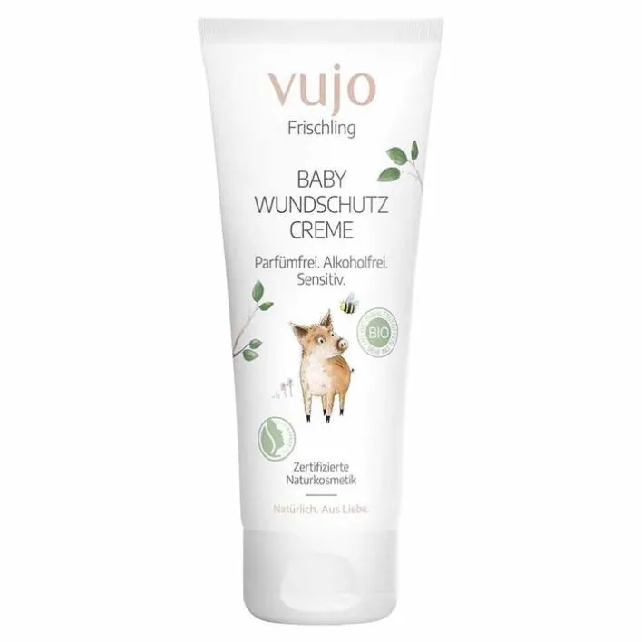 Der zarte Babypopo braucht ganz besonders viel Schutz. Ist die Haut Ihres Babys gerötet oder gereizt, bedarf es sofort intensiver Pflege. Die vujo Frischling Baby Wundschutzcreme hilft schnell und beugt Wundsein vor. Sie hält Nässe ab, pflegt sanft raue Stellen und legt sich wie ein Schutzschild auf die empfindliche Haut.