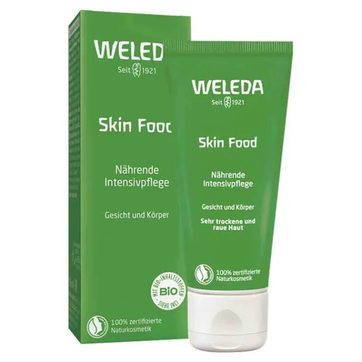 Weleda Skin Food sorgt für eine ausgeglichene Hautstruktur und eignet sich auch für besonders trockene Haut, zum Beispiel an Füßen, Händen und Ellenbogen.
