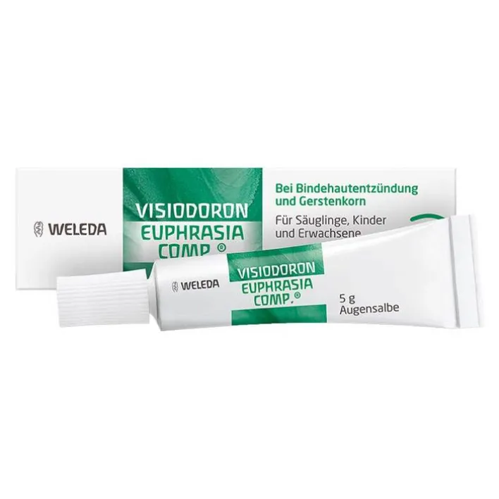Visiodoron Euphrasia comp.® Augensalbe Gemäß der anthroposophischen Menschen- und Naturerkenntnis. Dazu gehören: Bindehautentzündung und Gerstenkorn (Hordeolum). Dosierung und Art der Anwendung Falls vom Arzt nicht anders verordnet, mehrmals täglich in den Bindehautsack einbringen. Zu Risiken und Nebenwirkungen lesen Sie die Packungsbeilage und fragen Sie Ihre Ärztin, Ihren Arzt oder in Ihrer Apotheke. Weleda AG, Schwäbisch Gmünd