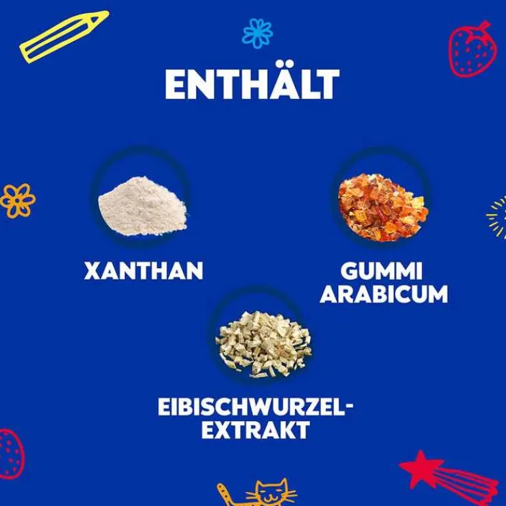 - Enthält Eibischwurzel, Xanthan und Gummi arabicum, die sich wie ein Schutzfilm auf die Rachenschleimhaut legen
