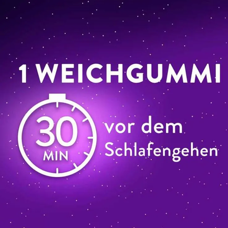 Nehmen Sie 30 Minuten vor dem Zubettgehen einen Weichgummi ein und ermöglichen Sie mindestens 6 Stunden Schlaf.