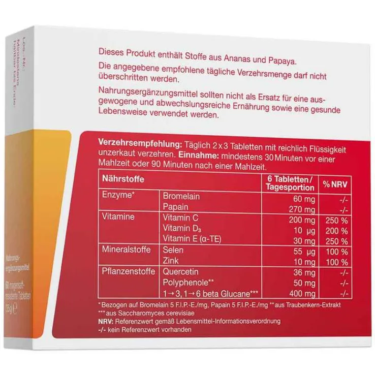 Allergiker-Hinweis: Dieses Produkt enthält Stoffe aus Ananas und Papaya. Wobenzym immun ist laktosefrei (ohne Milchzucker)