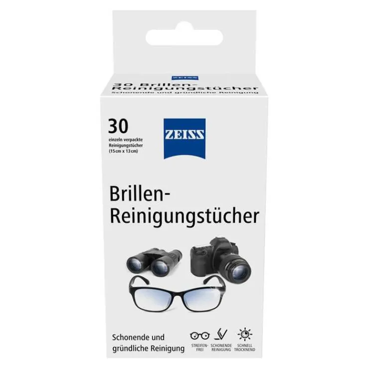 - ZEISS Brillen-Reinigungstücher wurden speziell für eine schonende und gründliche Reinigung von Brillengläsern entwickelt. Insbesondere hochwertige beschichtete Präzisions-Brillengläser lassen sich effektiv reinigen.