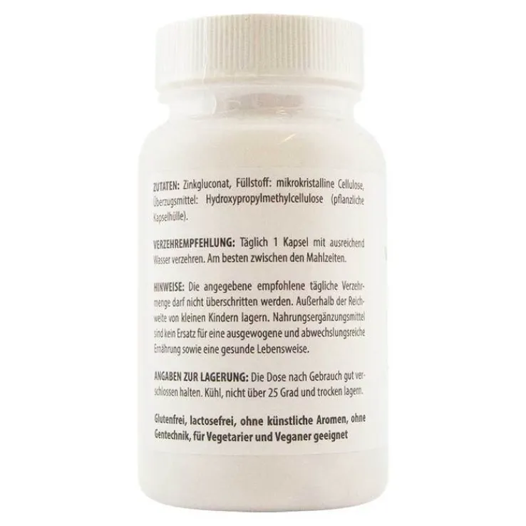 Füllstoff: Reismehl, Zinkgluconat, Überzugsmittel: Hydroxypropylmethylcellulose (pflanzliche Kapselhülle).
