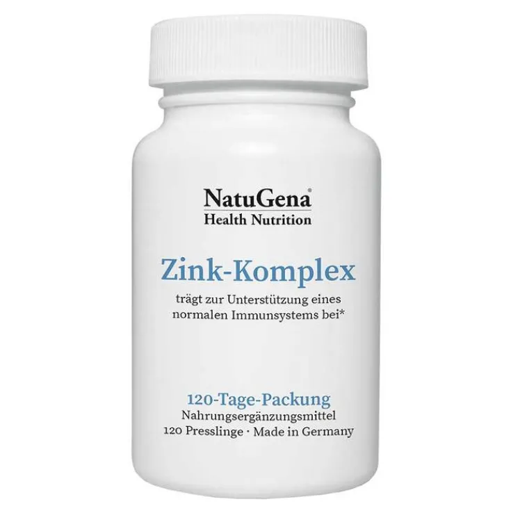 NatuGena Zink-Komplex kombiniert vier verschiedene organisch gebundene Zinkverbindungen: Zinkcitrat, Zinkgluconat, Zinkbiglycinat und Zinkpicolinat.