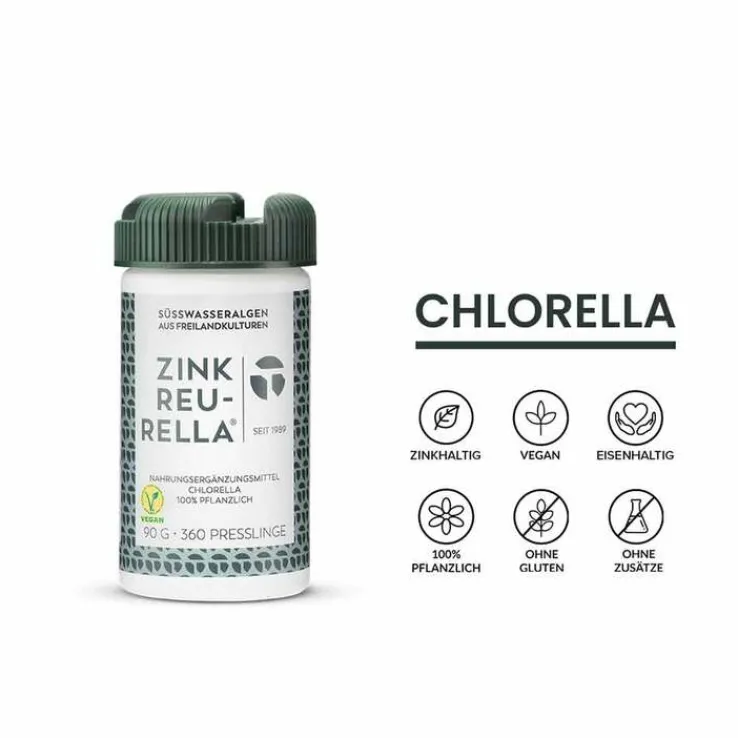 Zink Reu-Rella ist ein Nahrungsergänzungsmittel aus 100% reiner Chlorella (Chlorella pyrenoidosa), angereichert mit natürlichem Zink.