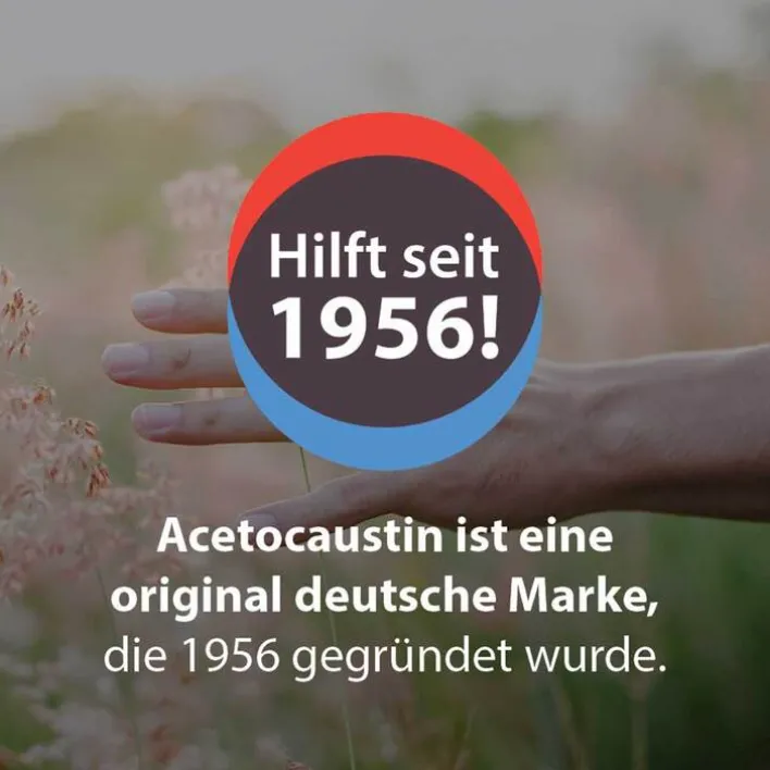 - Deutsche Qualität: Als Medizinprodukt Klasse IIa und als Teil einer deutschen Traditionsmarke seit 1956 steht Acetocaustin für bewährte Qualität und Verlässlichkeit.