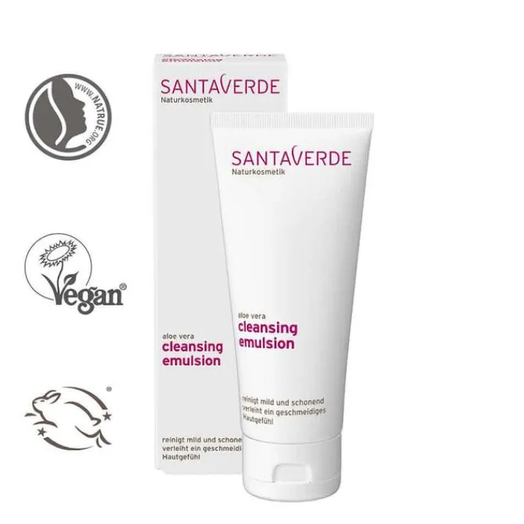 Die cremige Reinigungsemulsion reinigt mild und schonend, befreit die Haut gründlich von Make-up und Schmutz und bereitet sie ideal auf die nachfolgende Pflege vor. Reiner Aloe Vera Saft bewahrt die Haut vor Feuchtigkeitsverlust. Apfelsaft löst sanft Hautschüppchen. Kokos- und Sesamöl wirken rückfettend und schützen die sensible Hydro-Lipid-Balance. Verleiht ein geschmeidiges Hautgefühl. Besonders geeignet für trockene und sensible Haut.