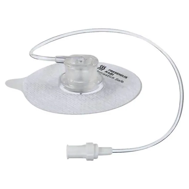 - Lösen Sie das Klebeadhäsiv komplett von der Haut und entsorgen Sie den Ambix Intrastick® Safe in einem geeigneten Kanülenabwurfbehälter.