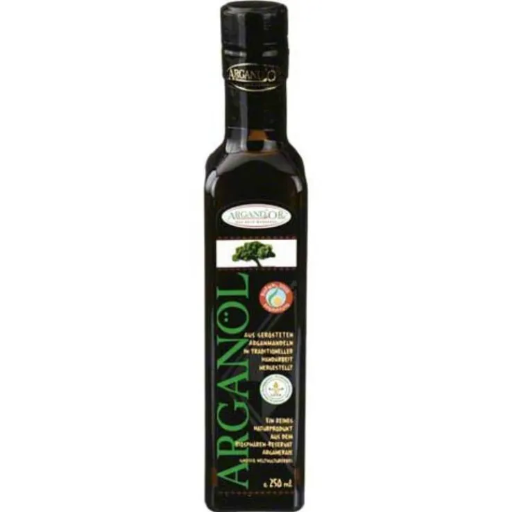 Biologisches Arganöl, geröstet, handgepresst, aus mild gerösteten Arganmandeln.
