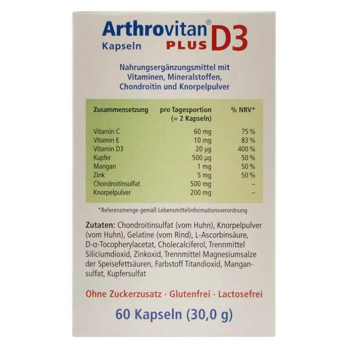 Arthrovitan Plus D3 Kapseln, 60 St> Glucosamin-Chondroitin|Gelatine