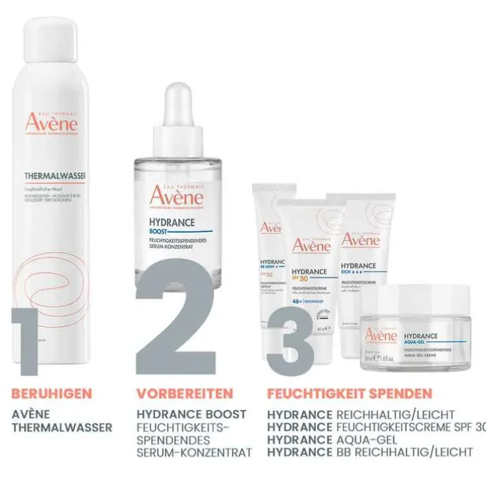 Die Formel ist reich an Hyaluronsäure und Vitamin B3. Sie besteht zu 96 % aus Inhaltsstoffen natürlichen Ursprungs, die für eine frische, nicht fettende und klebende wasserähnliche, frische Gel-Textur sorgen. Das Avene Hydrance Boost Serum erhöht den Feuchtigkeitsgehalt und sorgt für eine glatte, gesund aussehende Haut. Die Haut gewinnt an Strahlkraft und fühlt sich weich und angenehm an.