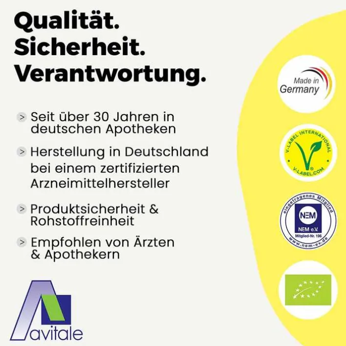 Nahrungsergänzungsmittel sind kein Ersatz für eine ausgewogene und abwechslungsreiche Ernährung und eine gesunde Lebensweise. Die angegebene empfohlene tägliche Verzehrmenge darf nicht überschritten werden.