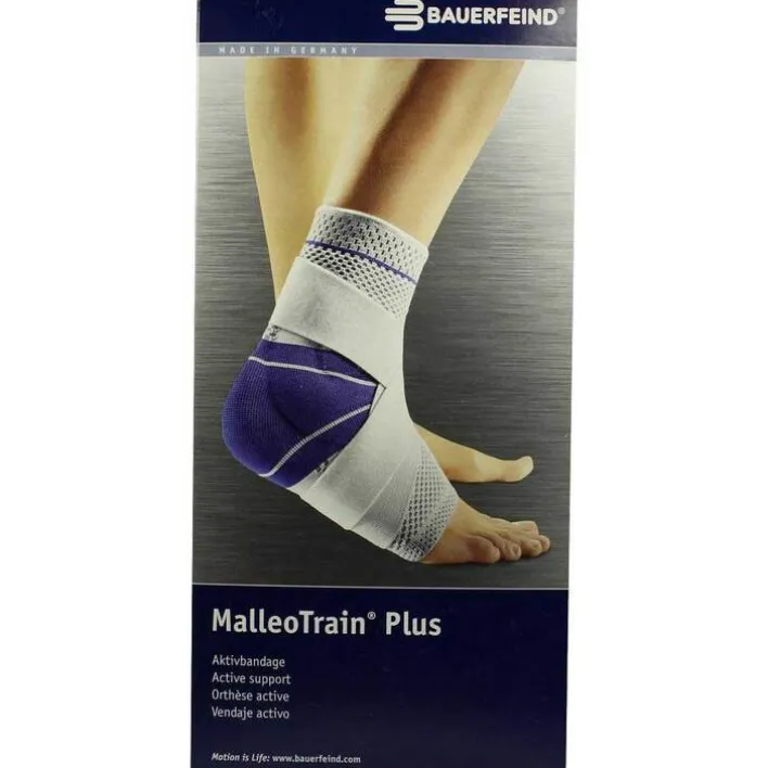 Die MalleoTrain Plus Bandage dient der Unterstützung und Stabilisierung des Sprunggelenks. Durch jede Bewegung massieren die beiden Pelotten am Innen- und Außenknöchel das Sprunggelenk und bewirken so eine bessere Durchblutung in diesem Bereich. Dadurch werden Schmerzen gelindert und Schwellungen können schneller abklingen. Zum Wirkmechanismus der Bandage kommt das System des Sport-Tapings. Das teilelastische Gurtsystem bietet durch seine besondere Form die einem Tapeverband ähnliche stabilisierende Wirkung.